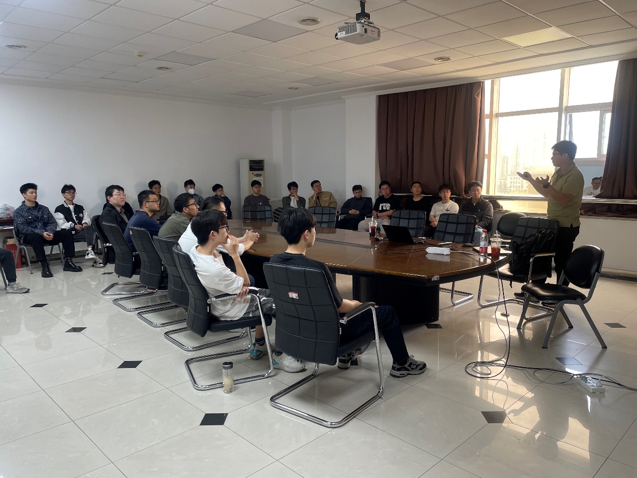 首先,周天异研究员给与会人员介绍了数据集蒸馏与修剪的重要性。在迅速发展的机器学习领域,"数据集蒸馏与修剪"已成为提升模型效能的关键策略。数据集蒸馏涉及从广泛的数据集中提取关键信息,创造出经过提纯的新的小规模数据,既保持模型的强健性又减轻计算负担。可以将其类比为从海量数据中提炼出知识的精华。另一方面,数据集修剪类似于修剪树木的不必要枝条。这一技术涉及删除多余或影响较小的数据点,从而实现更为精简、更快速、更节约资源的机器学习模型。通过消除多余信息,数据集修剪有助于构建性能卓越且无需不必要计算开销的精简算法。这两种方法共同应对当今数字时代数据丰富性带来的挑战。数据集蒸馏与修剪可以作为模型压缩研究的互补并且进一步优化了机器学习整个流程的能耗,从而最终现在大规模数据和大模型在终端的可持续化部署。在报告中,他详细介绍了其所领导的团队近年来在相关领域的代表性研究工作,及其展开高水平研究工作的实战经验。同时,也介绍了新加坡A*STAR人工智能中心(Centre for Frontier AI Research)的一些学习交流机会。周天异研究员的报告精彩纷呈,会后交流环节也和同学们有很好的互动,与会师生获益良多。