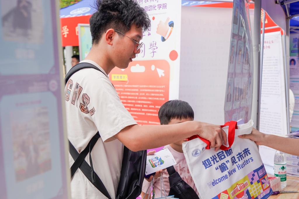 迎新现场忙中有序,有蕴藏温情的新生大礼包,内含学院精心准备的文创产品,还有特别设置的迎新打卡点。各辅导员、研班、志愿者以及学生骨干热情接待,用笑容和耐心驱走酷暑带来的疲惫。