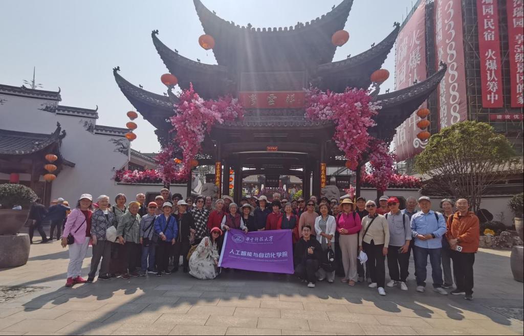 抵达祥云湾景区,老同志们在景区前合影留念,记录美好的瞬间。随后大家漫步在八派园,欣赏风格各异的古建筑,感受浓郁的历史与艺术交融的文化氛围。
