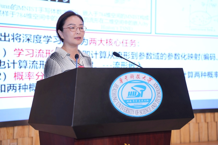 大连理工大学雷娜教授做了题为“基于最优传输的可解释深度学习理论及模型构建”的报告,介绍最优传输的基本理论和相关算法并从最优传输的视角解释了生成任务和分类任务,最后介绍基于最优传输构建的能够避免模式崩溃的新型生成模型、长尾分类模型、图像超分辨模、点云上采样模型等。报告由南方科技大学长聘副教授唐晓颖主持。