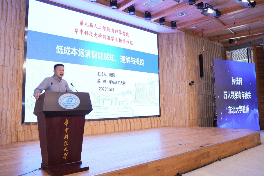 华东理工大学唐漾教授做了题为“低成本场景智能感知、理解与操控”的报告,围绕智能无人系统的感知与理解这一当前人工智能领域的研究热点,着重介绍了如何提升在低成本传感单元的系统感知的精准性和迁移性,以及在具身操控方面的成果。最后,对智能无人系统中的感知与理解的未来研究方向进行了总结与展望。报告由东北大学孙佳月教授主持。