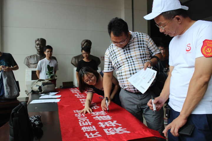 五天的调研与参观之余,实践队在井冈山当地还开展一系列的宣传活动,一路红色一路歌,队员们将学习领悟到的井冈山精神融入到建军九十周年的宣传当中。拉起横幅,队员们在发放宣传单的同时,还邀请游客与当地群众在队伍的宣传横幅上签名,为他们讲述起听到过的井冈山红色故事,队员们不自觉间便开始将井冈山精神融入到整个队伍,融入到整个社会实践中,之后还会将其带回校园,将星星之火洒满校园!