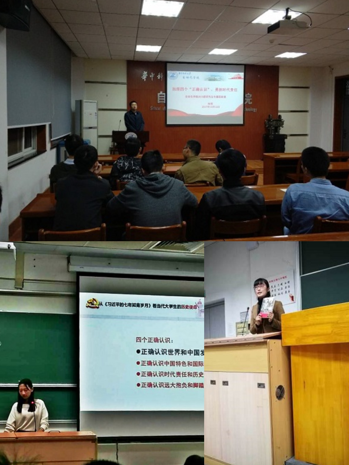 10月11日-15日,朱平及学工组辅导员为各年级学生授课,围绕习近平总书记在延安梁家河村的七年知青岁月,引导学生加深“四个正确认识”,坚定“四个自信”。思政课上学生们积极参与互动,暑期出国学生结合国外访学经历交流讨论“正确认识中国特色和国际比较”;院学生会主席,本科2015级党员薛安顺分享了自己暑期赴云南临沧精准扶贫社会实践的经历,谈到“正确认识时代责任和历史使命”学习感受时,他表示“祖国还有许多贫困地区需要我们去建设,我们应把个人的理想追求融入国家和民族的事业中,用青春梦激扬中国梦”。