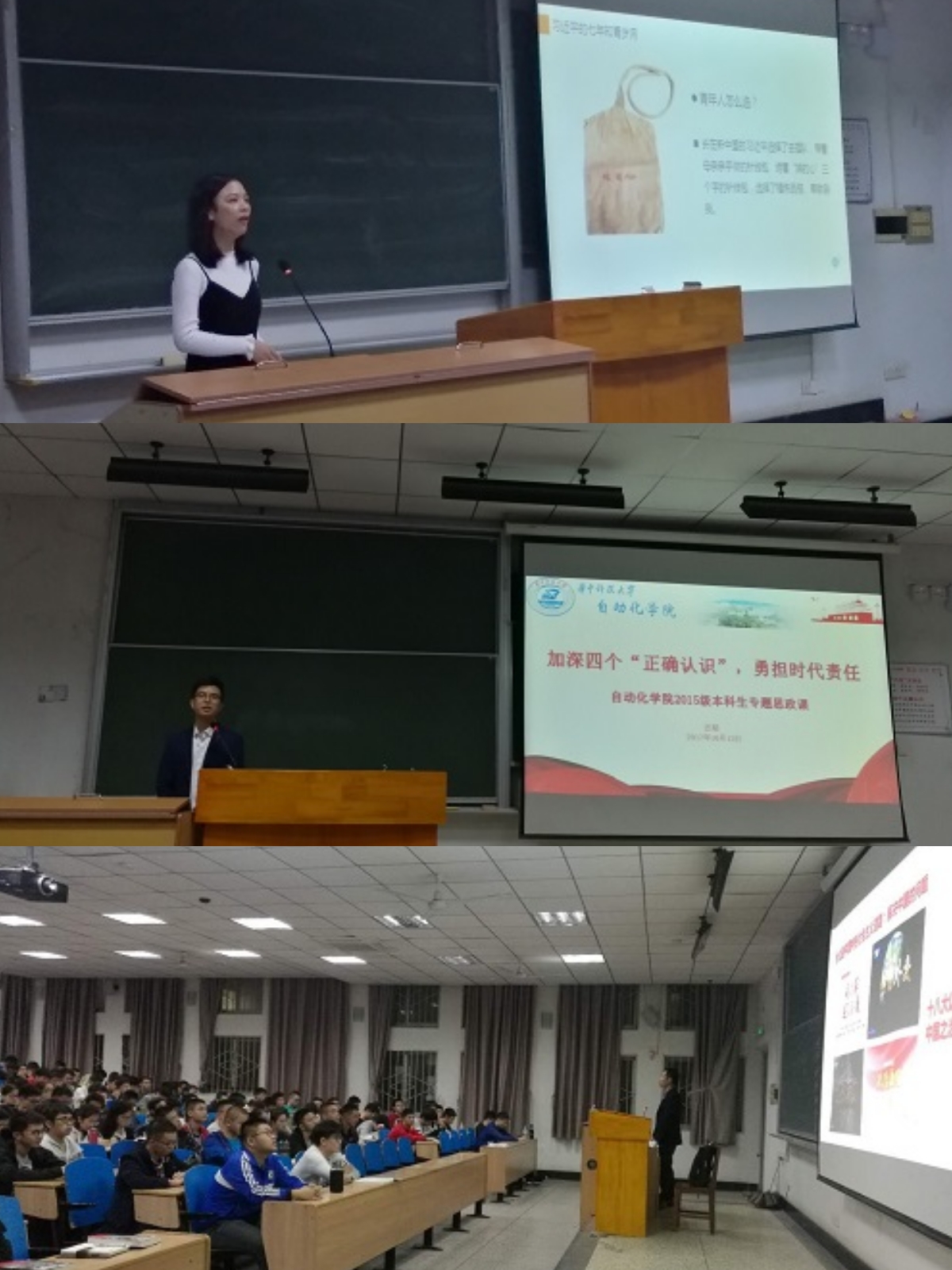 为迎接党的十九大,进一步贯彻落实全国高校思政工作会议精神,加强辅导员思想引领工作,在校党委及院党委的统一安排下,院党委副书记朱平及学工组全体辅导员为全院学子上一堂思政课。