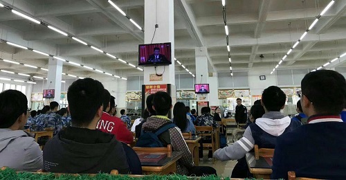 【学生于食堂集中观看】