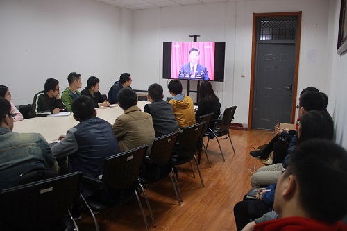 正值十九大召开之际,会议开始全体与会人员观看了十九大的新闻报道,重新学习了10日十九大开幕式上习近平总书记报告的要点内容。