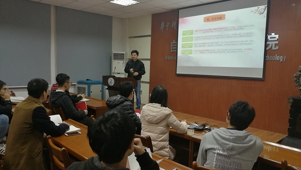 图:研究生党员朱梦圆为自动化硕1706党支部讲微党课
