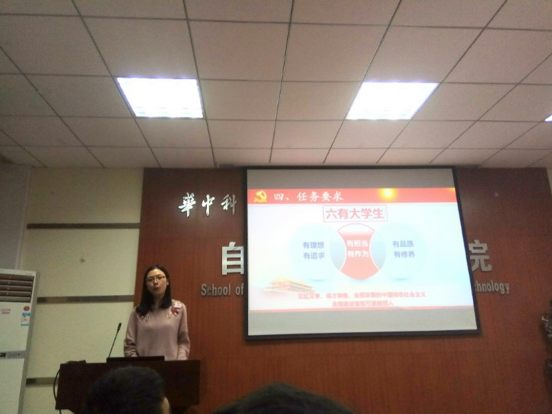 2017年11月24日晚,自动化学院研究生硕1701、1702、1708党支部联合召开组织生活会,会议在南一楼中311室举行,会议邀请了研工部党员代表陈璞贇上“学思践悟十九大之新征程”主题微党课,辅导员王腾飞参加本次会议。