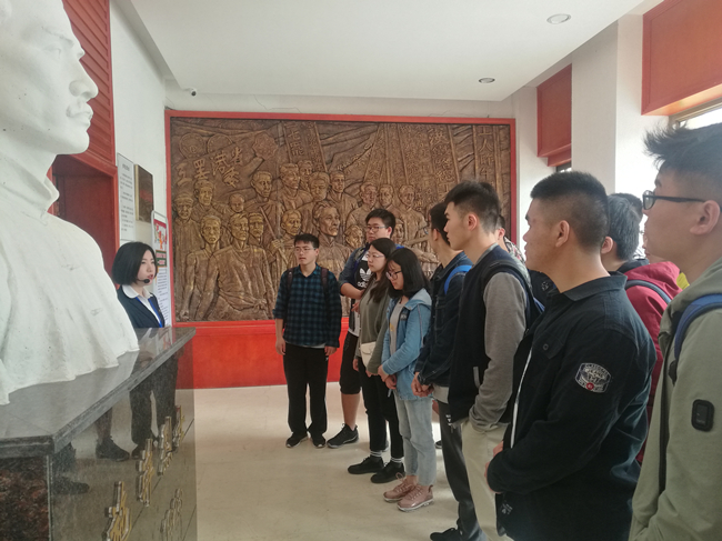 10点,在施洋烈士陵园,全体学生党员拜谒了施洋烈士雕像,祭拜了施洋烈士纪念碑,为施洋烈士献上鲜花,并且在纪念碑前诵读悼词。之后,全体参观了施洋烈士纪念馆。