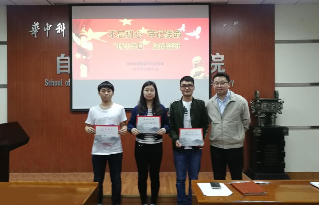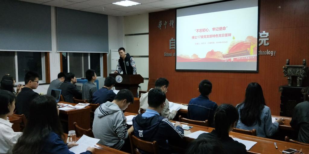 4月26日晚,自动化学院“不忘初心、牢记使命”研究生主题特色党日答辩会在南一楼顺利举行,院党委副书记朱平、党建辅导员王腾飞、研究生辅导员李增宇、梁浩伟以及各支部代表出席并担任评委,活动由研究生党建工作小组毛嘉兴主持。
