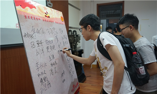 全体本科毕业生党员一起观看学习了习近平总书记在纪念马克思诞辰200周年大会上的讲话,学习了校研究生红色理论学讲团以“凝心聚力,讲好新时代中国故事”为主题的微党课,并在“坚定党员信仰、弘扬五四精神、奉献火热青春”的签名板上留下了自己的青春承诺。