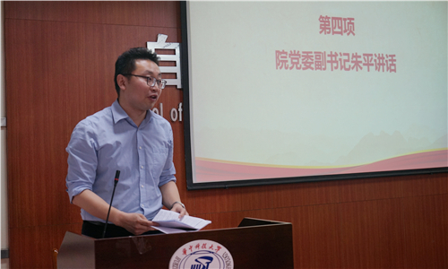 学院党委副书记朱平朱平结合总书记系列讲话精神寄语青年学子。他说,习近平总书记在北大座谈会上对青年人提出了“要爱国,忠于祖国,忠于人民;要励志,立鸿鹄志,做奋斗者;要求真,求真学问,练真本领;要力行,知行合一,做实干家”的新要求,就是勉励广大青年学子胸怀理想、立足中国、脚踏实地、勇担重任;习近平总书记高度评价马克思的一生,深刻阐述了马克思主义思想的深刻理论内涵,提出了马克思主义在中国大地的伟大成就,明确指出了从九个方面学习马克思的科学方法,就是号召我们全体青年党员坚定信仰,深入学习马克思,终身学习马克思主义思想。毕业生党员同学即将进入人生新的阶段,要真懂真信,做“坚定的马克思主义者”,聚焦中国实际,在实践中学习马克思主义和共产主义理想,认真践行习近平总书记对青年“爱国、励志、求真、力行”的要求,为实现“两个一百年”奋斗目标、实现中华民族伟大复兴的中国梦不懈奋斗。