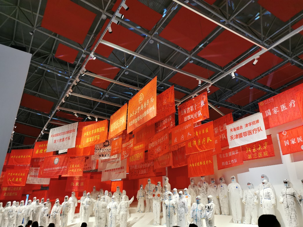 展品中,不少防护服上除签名外,还特别标注“党员”二字,展现了党员群体在国家和人民需要时,舍生忘死、不辱使命的精神。在一面面援鄂医疗队队旗、一封封党员先锋队请战书中,学院党务中心成员们深刻体会到了冲锋在前,舍小家为大家,不计个人得失勇挑重担的抗疫精神。