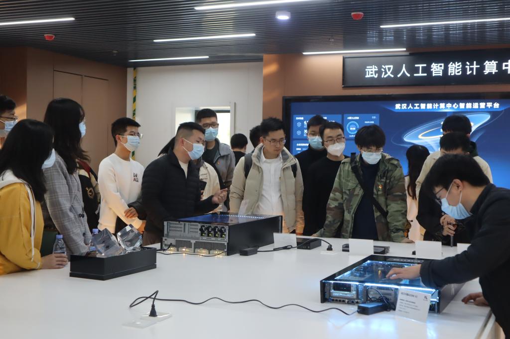 随后师生们参观了武汉人工智能计算中心,计算中心是专注于AI计算的新型城市基础设施,其强大算力为重大科研任务、智能制造、智慧城市、智慧零售、电力巡检等领域提供强大技术支撑。