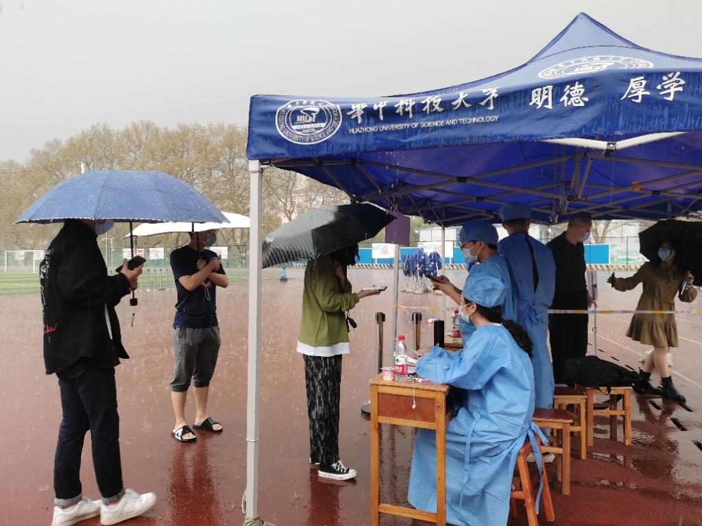 抓落实、强担当,做群众的“贴心人”。自三月以来,全国新冠疫情形势再度严峻,时值疫情“倒春寒”,为积极响应国家“动态清零”的疫情政策,全体华科师生坚持核酸一周两检,防微杜渐。3月16日,硕士2101党支部成员积极报名核酸检测志愿活动。有人引导群众扫码,有人维持检测秩序,有人搬运防疫物资,滂沱大雨也没有浇灭支部成员的热情。本次核酸检测志愿服务工作,是扎紧织密抗疫“防守线”的积极实践,也是支部成员在防疫岗位上积极践行志愿服务精神、展现青年磅礴力量的重要契机。相信在所有人的共同努力下,疫情终将散去,万物终将向阳。