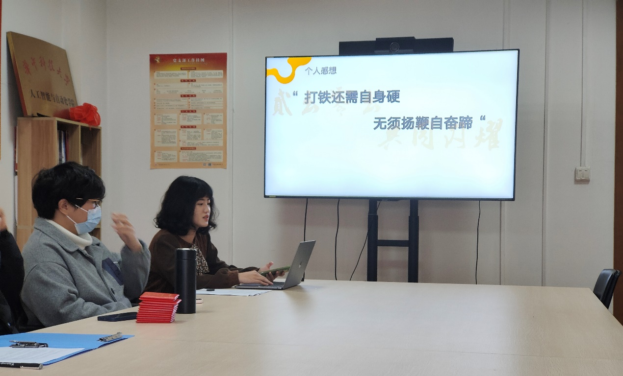 会议第一部分,张诗曼同志对党支部成立以来完成的工作和取得的成果进行汇报。她首先对党支部的基本情况进行了介绍,随后回顾了党支部规范化制度建设后开展的一系列特色党日活动和支部成员风采,并强调党支部成员要坚持党史教育的常态化学习。最后通过对上学期的支部建设内容的总结和梳理,讨论了党支部存在的不足及进一步的改进措施。“打铁还需自身硬,无须扬鞭自奋蹄”,相信硕士2101党支部在严格的自我要求下,会得到更好的进步与成长。