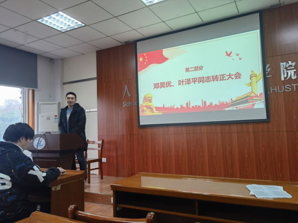 随后,会议讨论了预备党员叶泽平、邓昊优同志的转正工作。两位同志在预备期间能认真履行党员义务,以党员标准严格要求自己,在理论学习和专业课程学习中都有了十足的成长,综合表现优异,大会一致通过了两人的转正申请。
