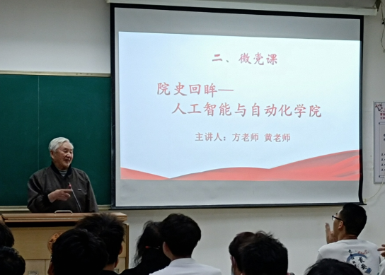 方玉香是学院离退休党支部的书记,她将自身求学和育人经历与学院发展历程结合,带领支部成员们详细了解了beat365唯一官网的“前生今世”。她从超前意识、综合发展和重视人才培养三个方面总结了学院发展的成功经验,并激励同学们继承和发扬好“华中大精神”和“自控精神”。