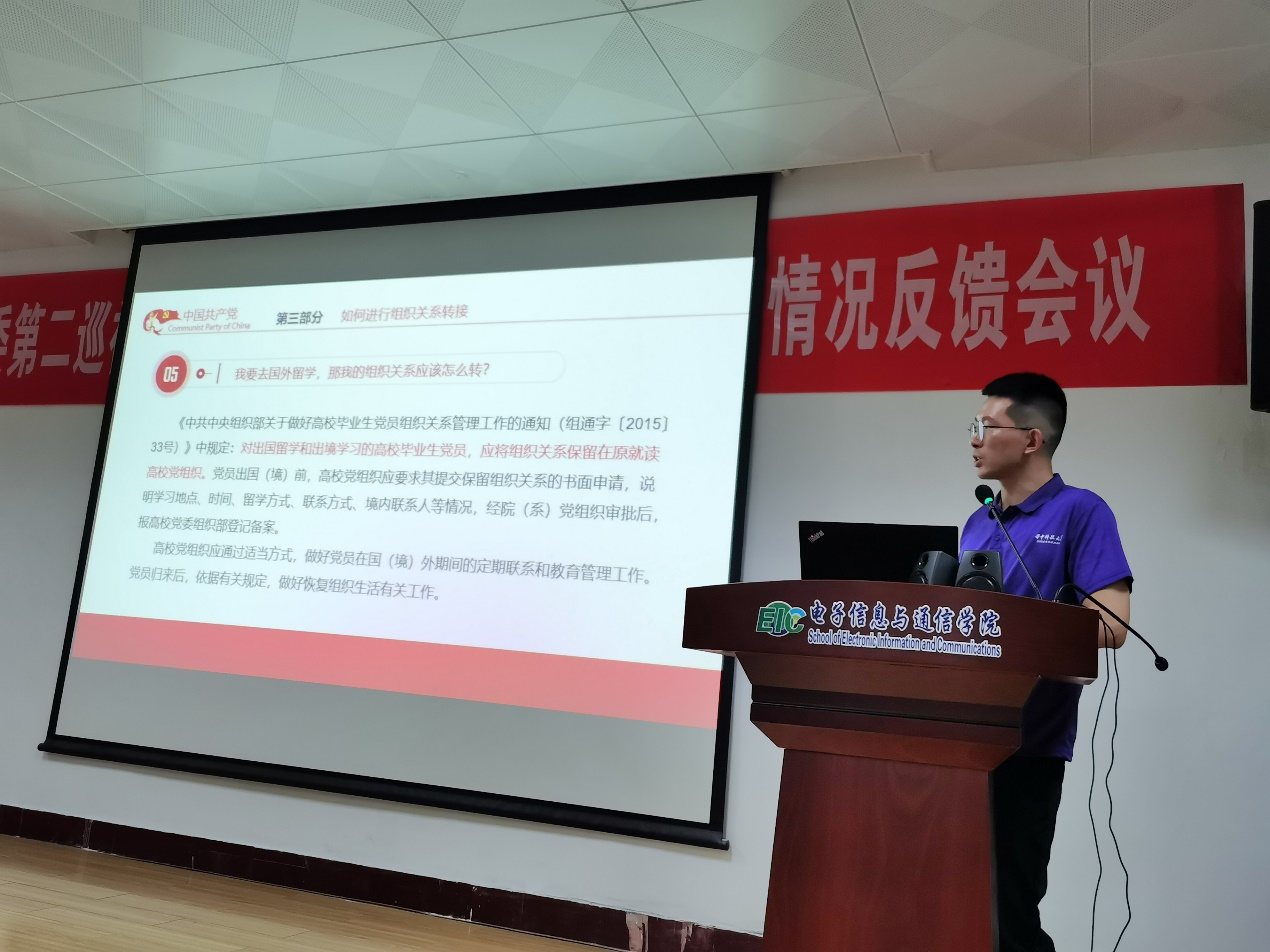 最后学院负责党建工作的辅导员王泽楠以毕业生党员组织关系转接为主题开展专题教育,强调了组织关系转接的重要性,讲解了组织关系转接注意事项。(通讯员:潘孝枫 王泽楠)