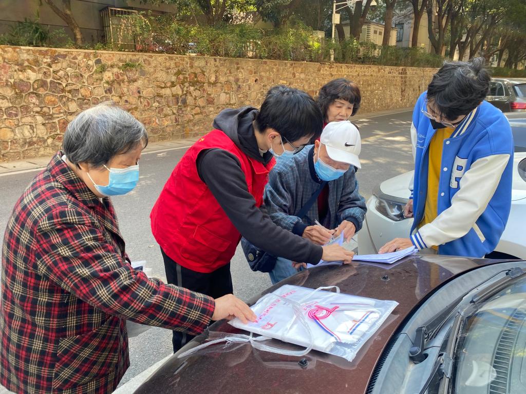 为方便学院退休教职工领取体检指引单,学院招募志愿者为退休教职工在喻园教工超市和西边高层小区门口定点发放。硕士2108党支部积极响应,组织支部党员报名参与本次志愿活动,顺利完成了体检指引单的发放工作。