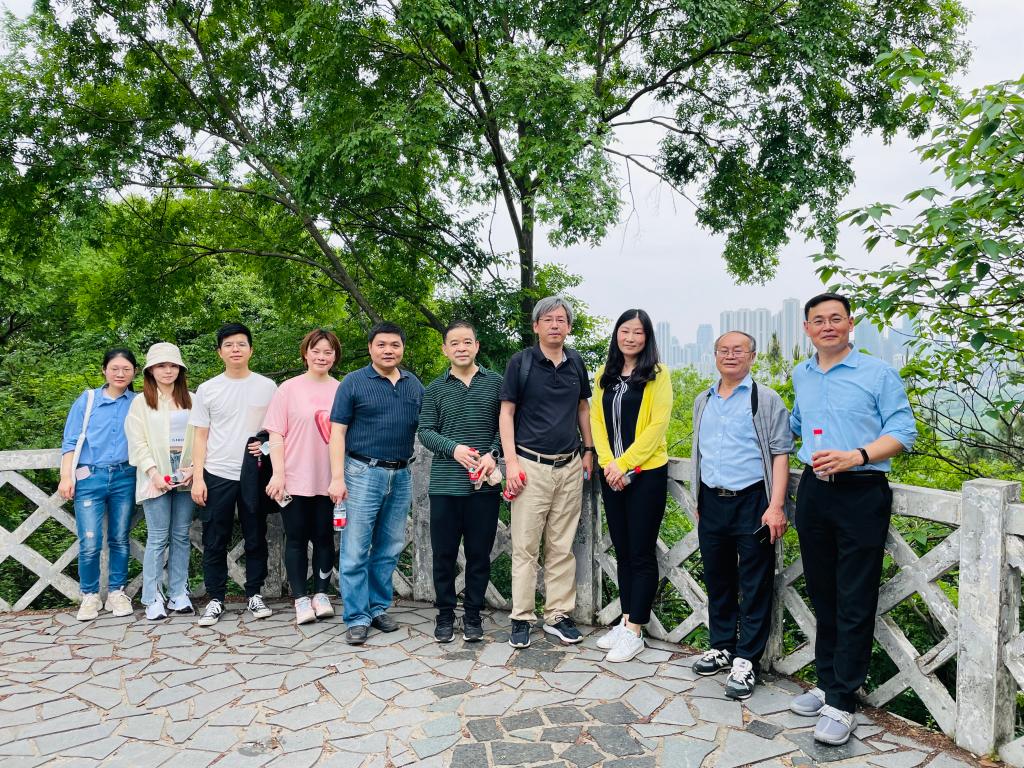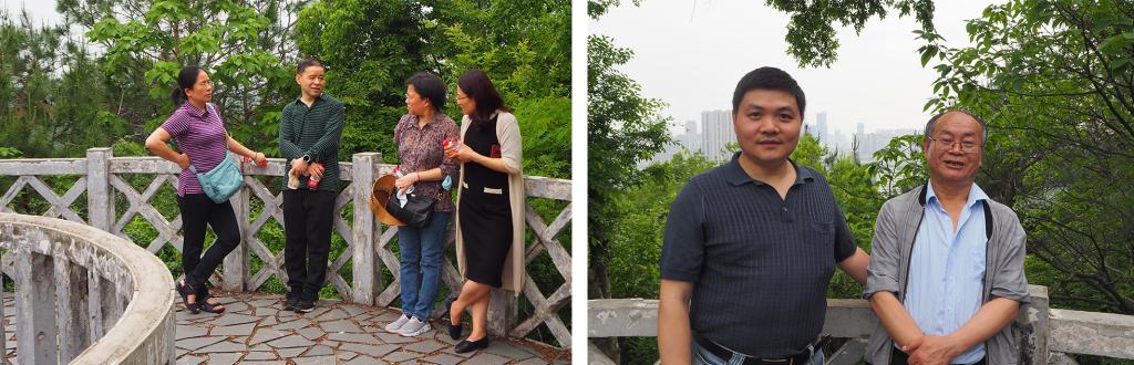 4月28日下午2点30分,老师们走出办公室、实验室,相约喻家山下,一同感受春末季节里的青翠幽静。沿着入口处的石阶而上,满目树林密布,空气清新。老师们一边登山,一边交流,人人都是运动健将。路过瑜珈草堂、熏风亭、不鸣不飞亭、凤飞台,大家在山顶汇合。登临喻家山顶,俯瞰正南,数千亩华中大校区全景尽收眼底。今年正逢学校70周年校庆,老师们纷纷感慨学校七十年的风雨历程和巨大变化,感叹自己在学校里度过的青春年华和激情燃烧的岁月,为身为华科大的一员而感到无比自豪。