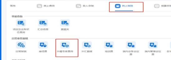 第二步:报账人通过财务办公平台完成外籍专家费用网上提交、
