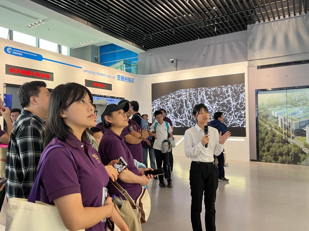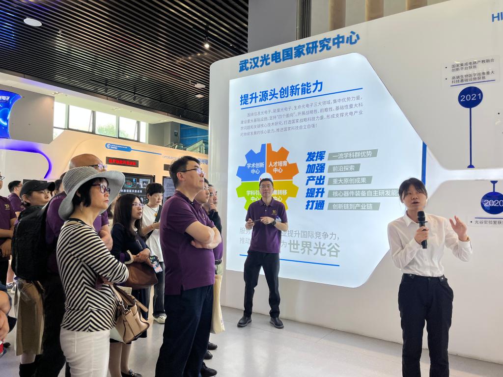 在武汉光电国家研究中心,现场讲解员向大家介绍了中心基本情况、发展规划和近期进展,以及光谷实验室建设情况,同时引导校友们参观了研究中心聚焦信息光电子、能量光电子、生命光电子三大领域的最新科研成果和应用。“多学科的交叉与融合,是创新的源泉,也是华科的优势!”在强磁场科学中心,工作人员用深入浅出的语言为大家介绍了强磁场装置的运行机理和对许多科研成果的巨大贡献。校友们也深深感受到,这一项项创新成果,正是华科大“双一流”建设进程中,加强优势学科建设的一个缩影。